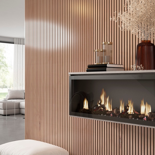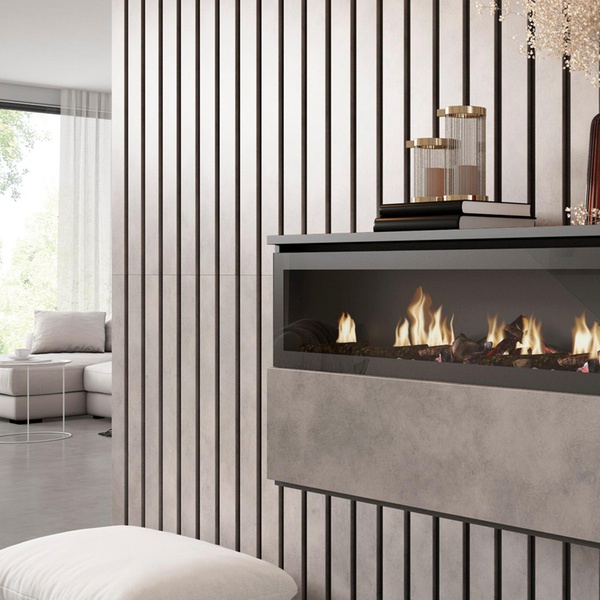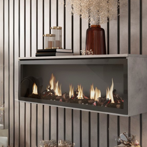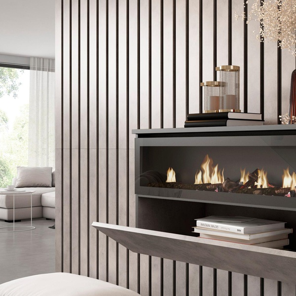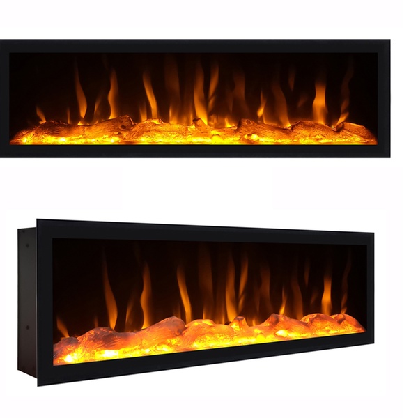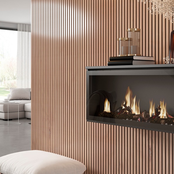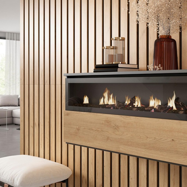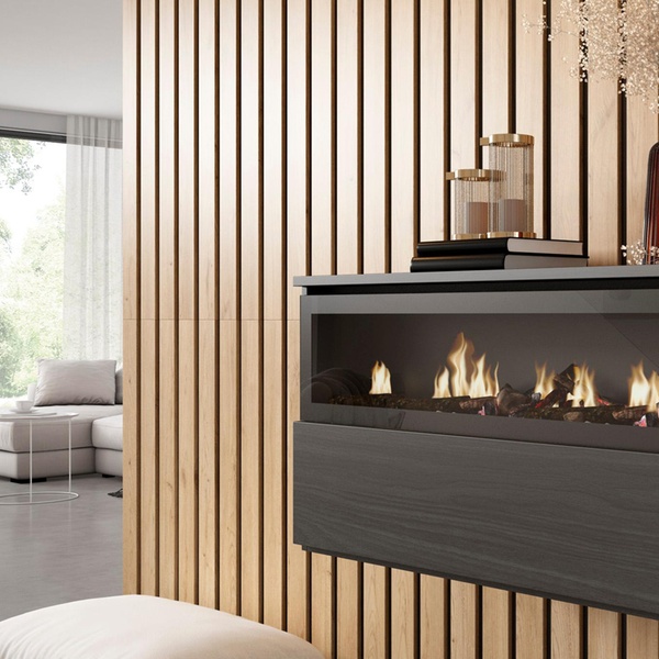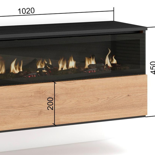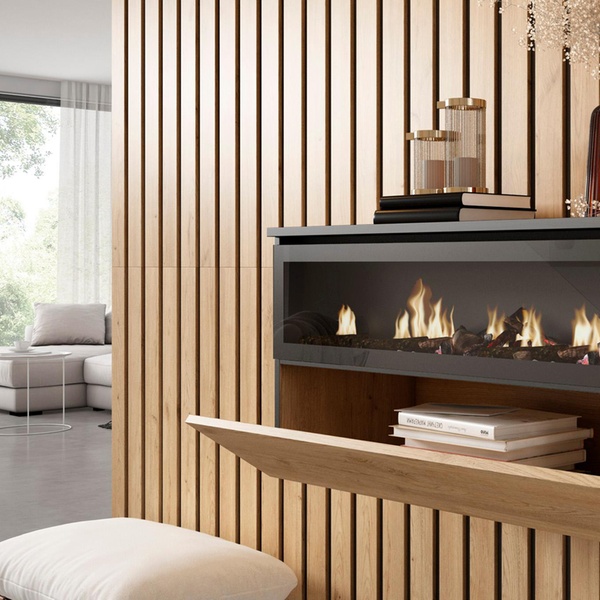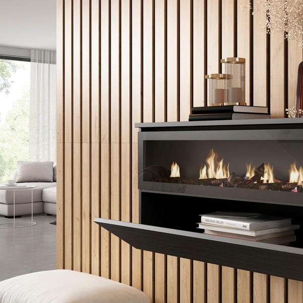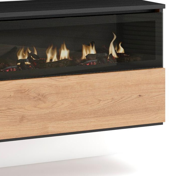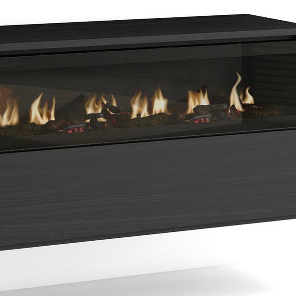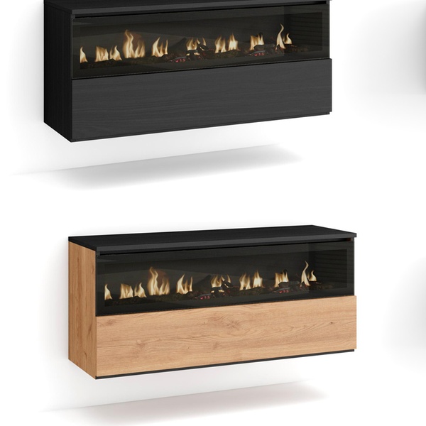 Elektrischer LED-Kamin mit realistischem 3D-Flammeneffekt, 3 Intensitätsstufen und Fernbedienung, optional mit Hängeboard und Stauraum im modernen Design