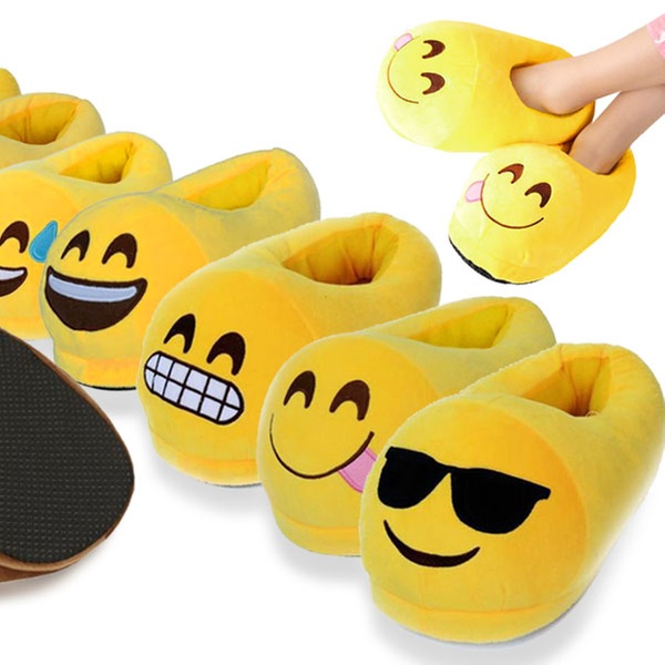 Schöne und warme Emoji Smiley Hausschuhe, die in zahlreichen verspielten Varianten und Größen erhältlich sind