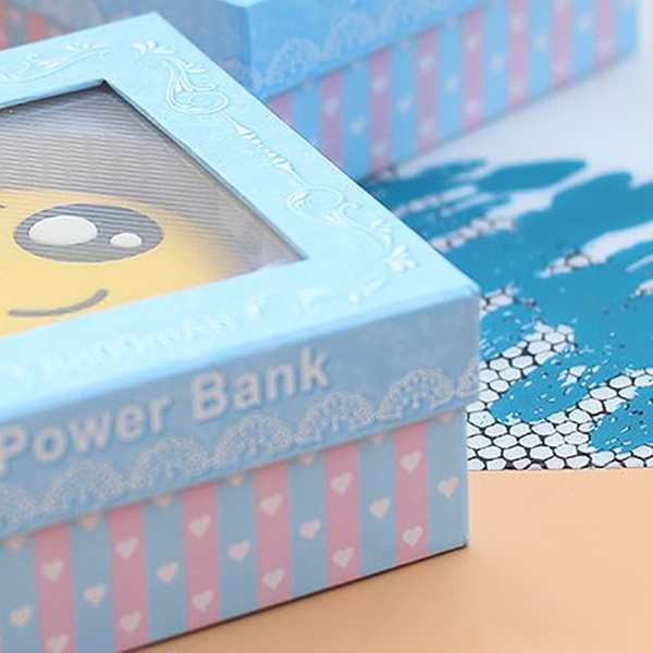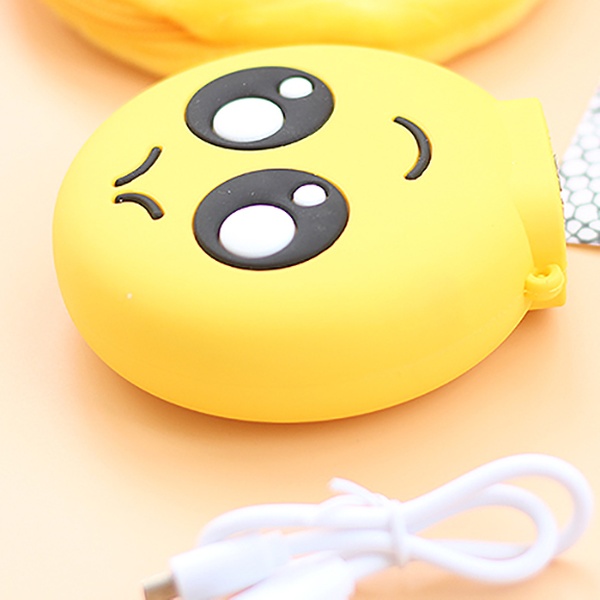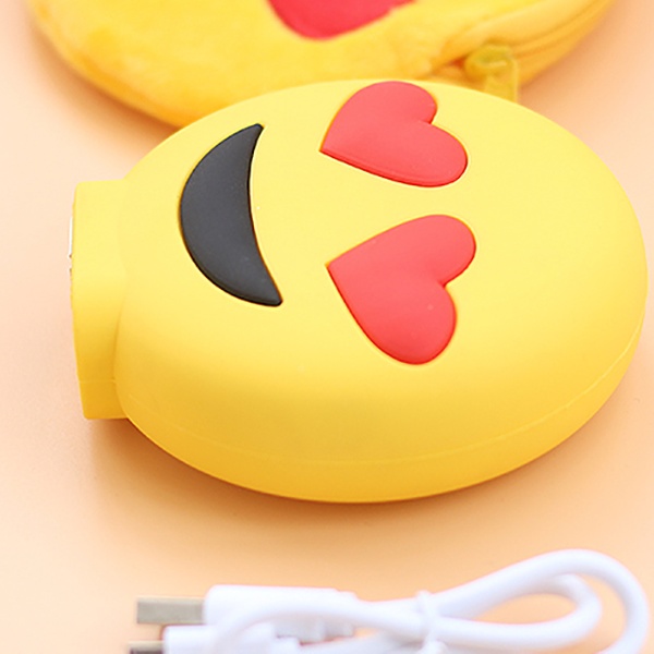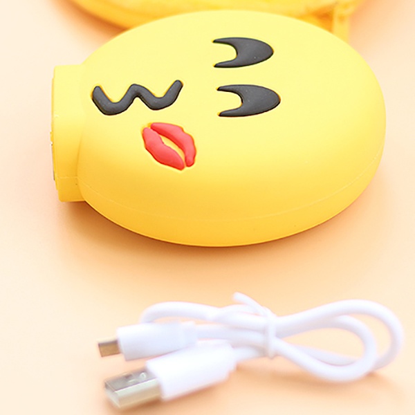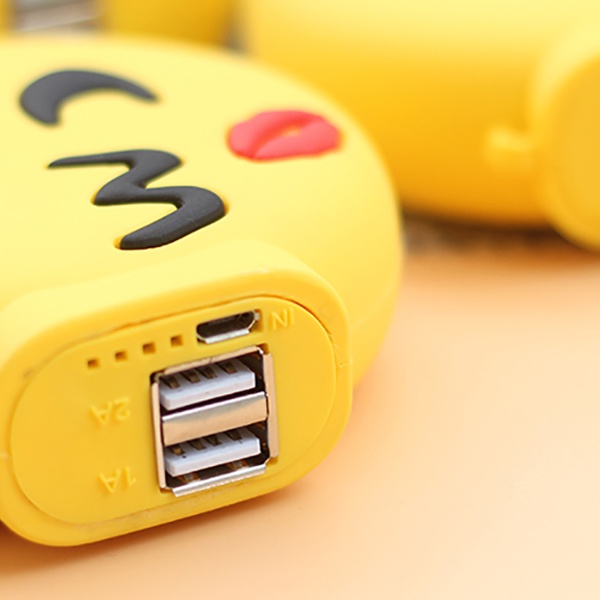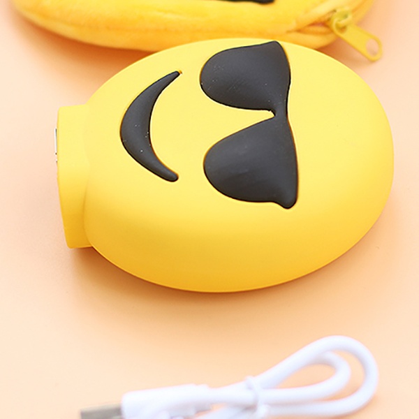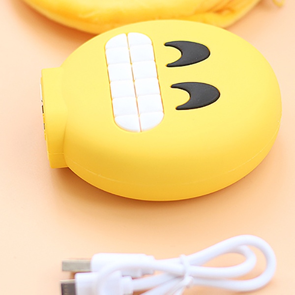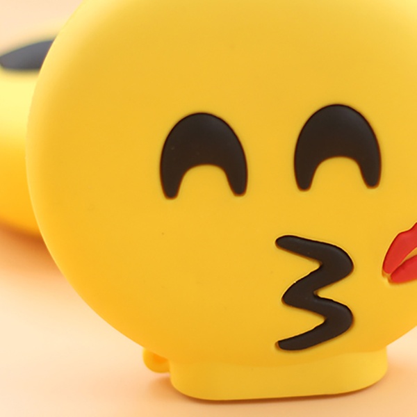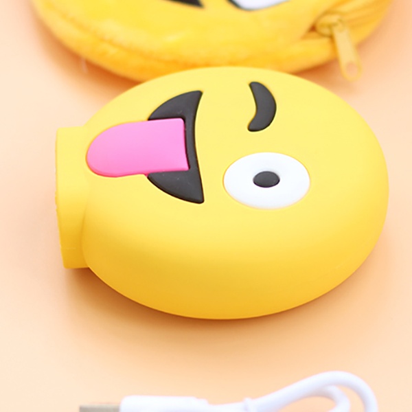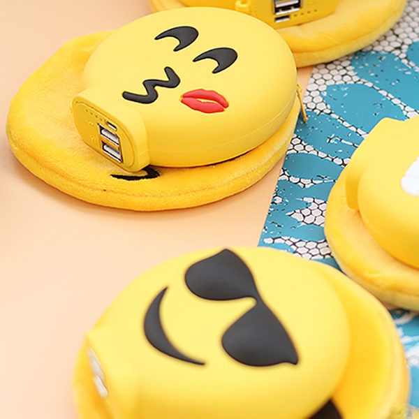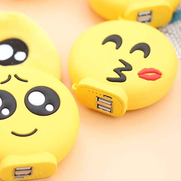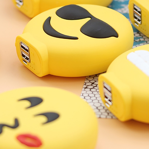 Powerbank im angesagten Emoticon-Modell nach Wahl mit LED-Leuchte und zwei USB-Ports zum Aufladen von zwei Geräten zur gleichen Zeit