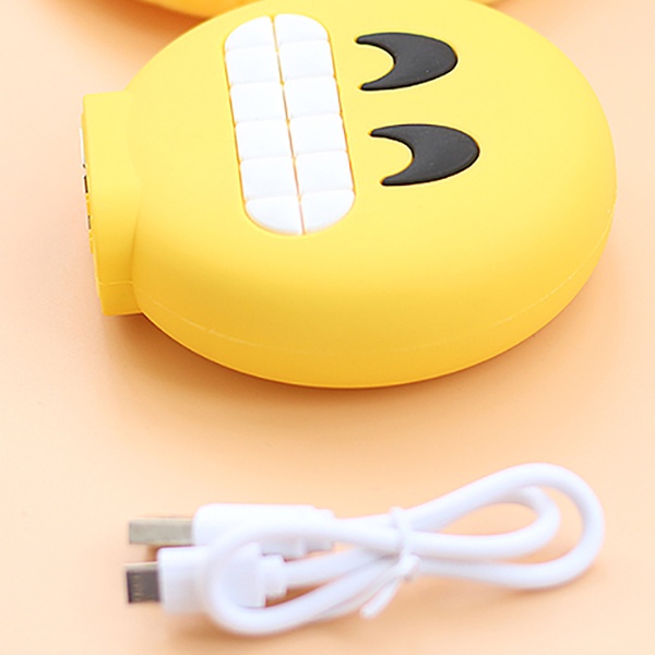 Eine Powerbank im angesagten Emoticon-Design nach Wahl mit LED-Leuchte und zwei USB-Ports zum Aufladen zweier Geräte zur gleichen Zeit
