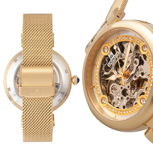 Eine elegante Damen Automatikuhr mit skelettiertes Perlmutt-Zifferblatt, in vielen modischen Farben erhältlich