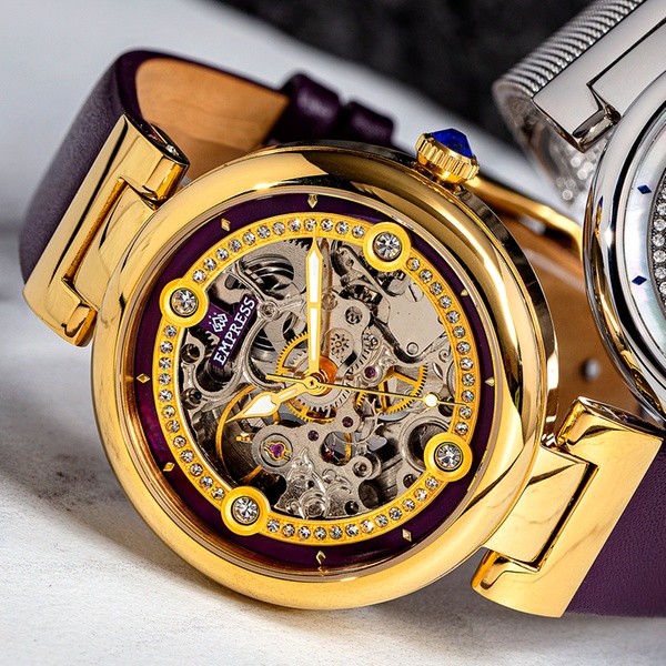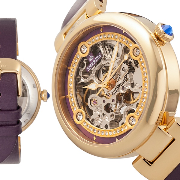 - EMPEM2506: Gehäuse: Gold / Armband: Violett / Zifferblatt: Violett