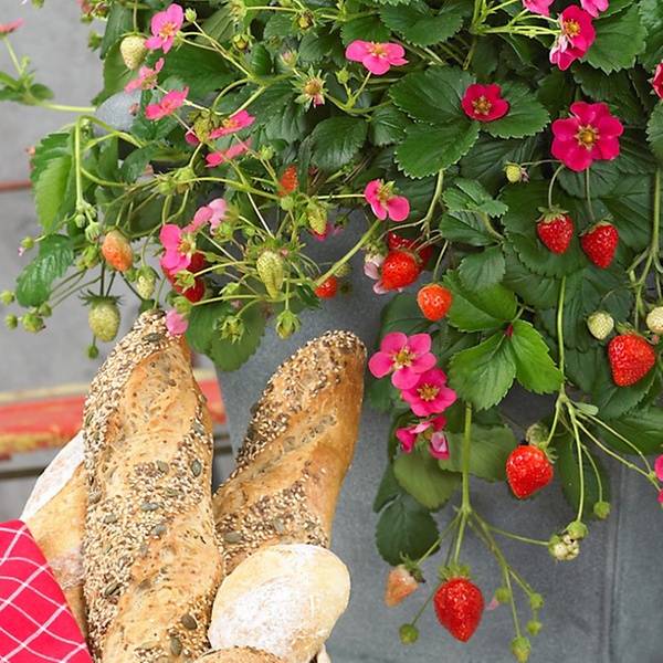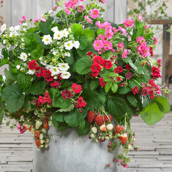 Eine farbenfrohe Erdbeerpflanze für die Terrasse oder den Balkon