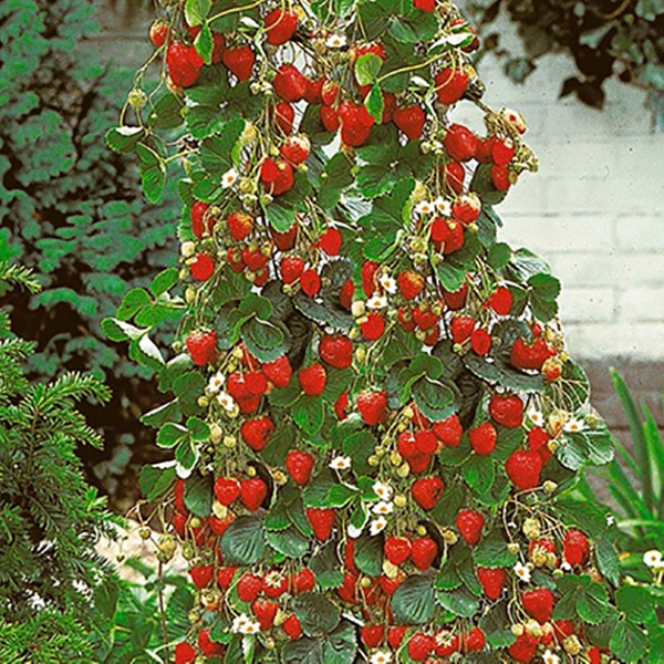 Die Klettererdbeerpflanzen sollen von Sommer bis Winter mit ihren süßen Früchten dem Gaumen schmeicheln und lange, prächtige Ranken bilden