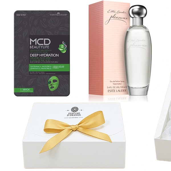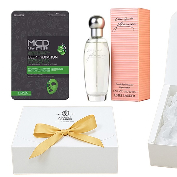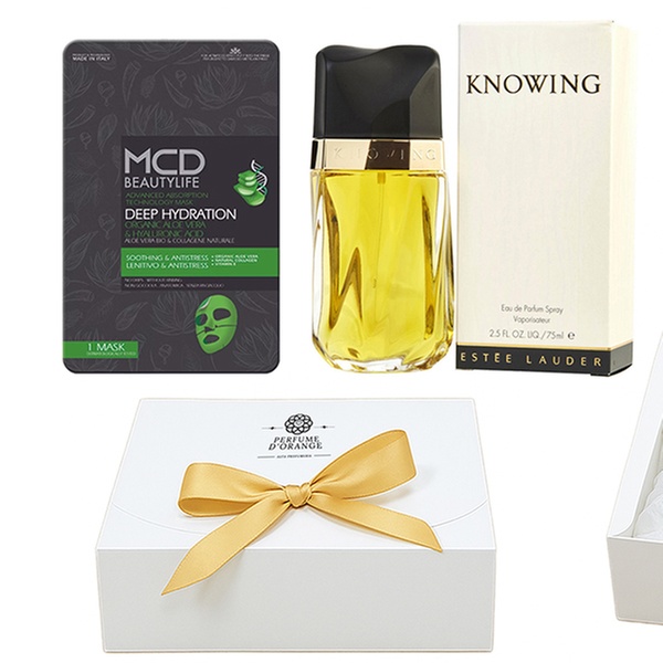 Elegantes Estee Lauder Eau de Parfum nach Wahl mit Aloe-Vera-Hydrogelmaske von MCD Beautylife in luxuriöser Geschenkbox