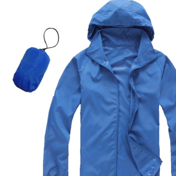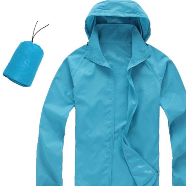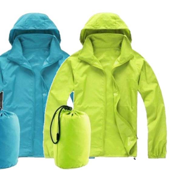 Leichte Regenjacke mit praktischer Kapuze und Aufbewahrungstasche für einfaches Verstauen