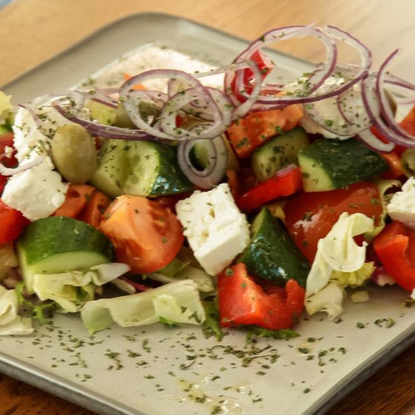 - Vorspeise: Frischer Salat mit Rucola, Garnelen und Avocado