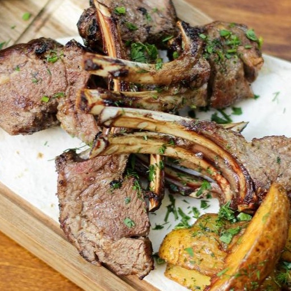 - Hauptspeise: Zartes Lammkarree mit Bauernkartoffeln