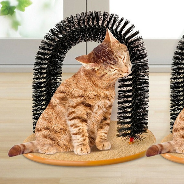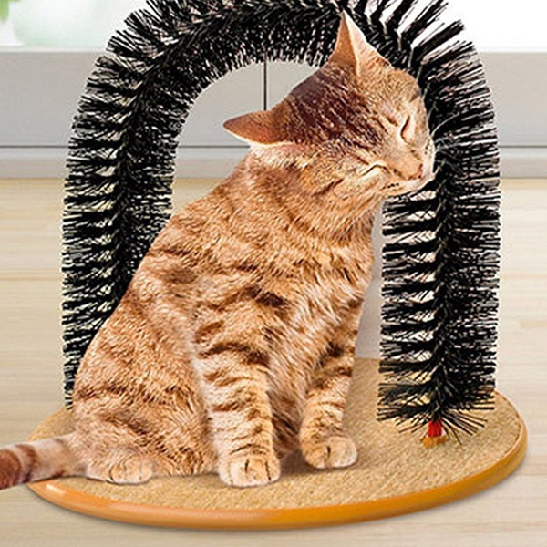 Ein robuster Massage- und Fellpflegebogen mit strapazierfähigen Borsten und Boden, auf den die Katze schlafen oder ihre Krallen wetzen kann