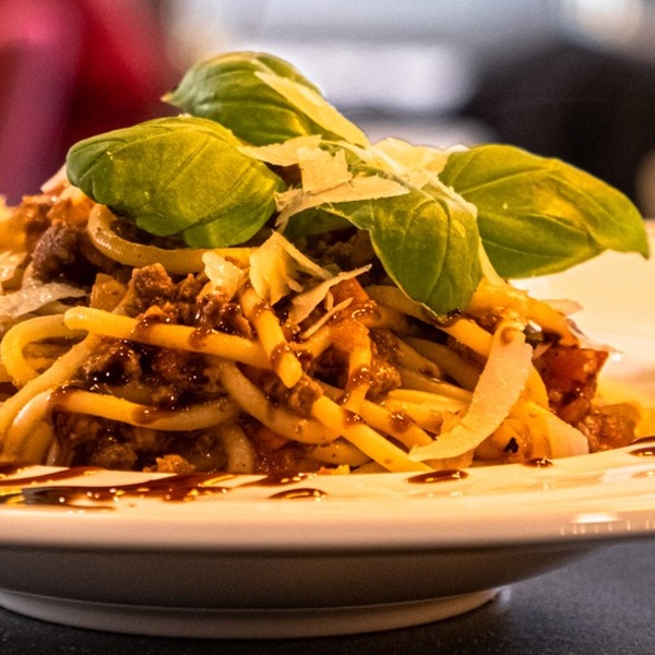 - BOLOGNESE: Tomatensauce, Rinderhack, Gemüse-Brunoise