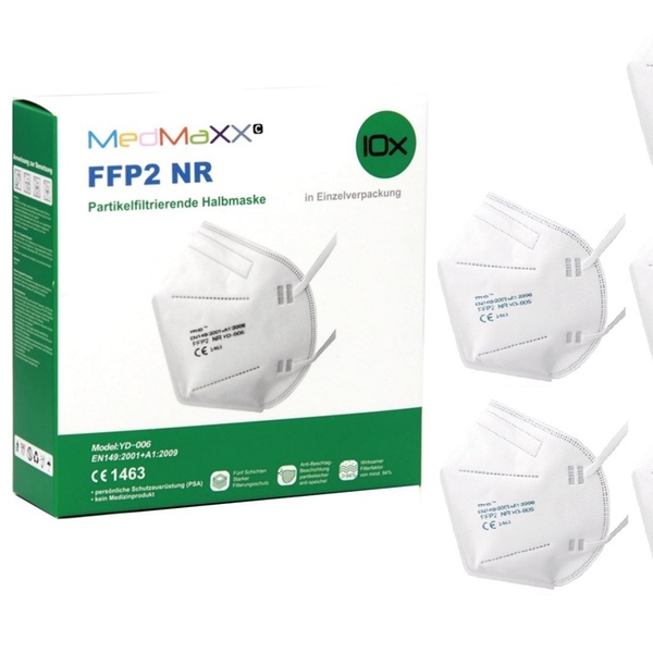 • Material: Meltblown-Polypropylenspinnvlies, ca. 200 g/m² • Zertifizierte FFP2-Atemschutzmaske nach EN149:2001, CE 1463 Norm • Für private und professionelle Zwecke geeignet • Eingearbeiteter, flexibel anpassbarer Nasenbügel - auch für Brillenträgern problemlos tragbar • Kann mindestens 94% der sich in der Luft befindlichen Partikel bis zu einer Größe von 0,6 μm filtern • Anpassbar auf unterschiedliche Gesichtsformen • Weiche Materialkanten für mehr Tragekomfort • Integrierte Dichtlippen für einfaches korrektes Aufsetzen der Maske • Kann über längere Zeit getragen werden, ohne zu stören • Sehr leicht und mit guter Qualität • Bequemer, anatomisch richtiger Sitz • Für unbehinderte Atmung • Mit Gummi-Bändern ohne binden • Empfohlene Tragedauer laut dem Robert Koch-Institut (RKI) • Maximal 75 Minuten mit anschließend 30-minütiger Pause • Nach acht Stunden oder bei Durchfeuchtung sofort entsorgen • Einzeln eingeschweißt in Schutzverpackung