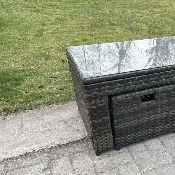 - Material: Galvanisierte Stahlrohr-Metallrahmen mit Pulverbeschichtung, Polyrattan, 5 mm gehärtetes Glas