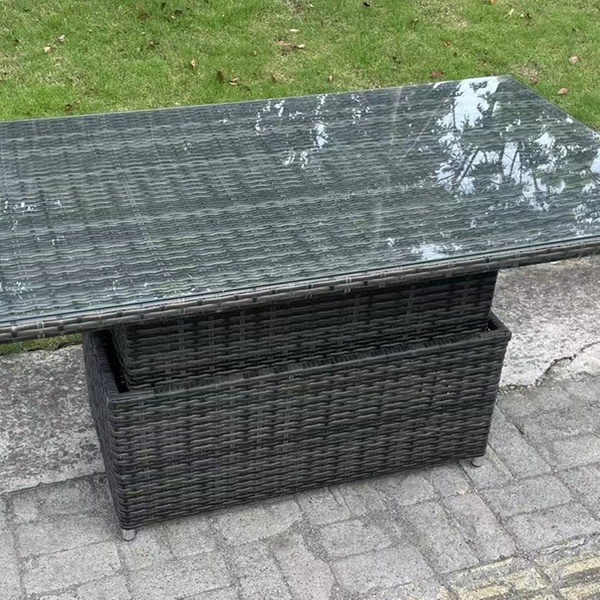 - Material: Polyrattan, verzinkter Stahl, 5 mm gehärtetes Glas, Stoff