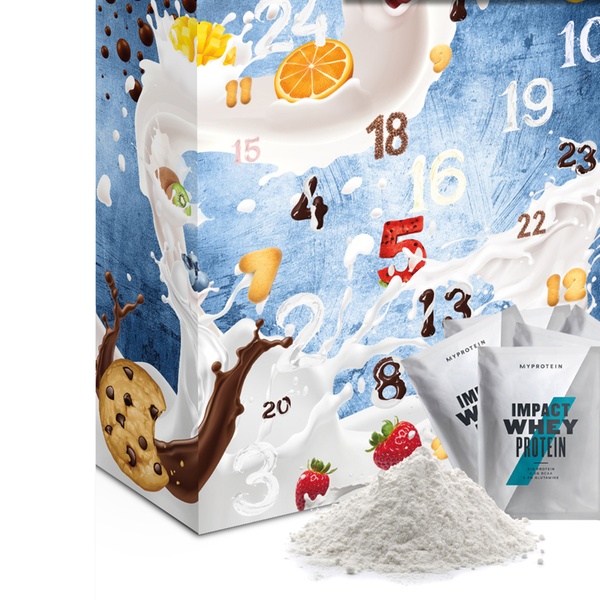 - Täglich ein Türchen öffnen mit kleinen Überraschungen wie z.B. verschiedene Whey Protein Sorten, Gewürzmischungen, Riegeln, Kernen und getrocknetem Obst