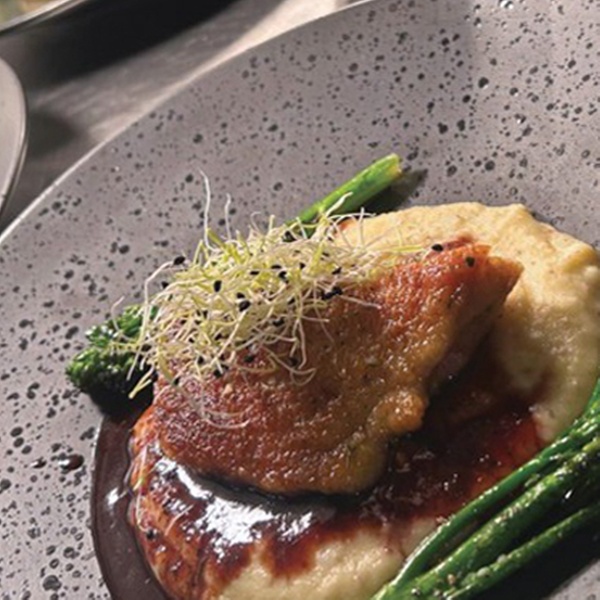 - 5 kreative, aufeinander abgestimmte Gänge mit Aromen aus aller Welt, zubereitet mit saisonalen Produkten