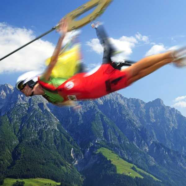 Ein Flug mit dem Flying Fox XXL bietet in Leogang ein Action-Abenteuer für die ganze Familie. Sicher eingeklinkt geht es mit der Stahlseilrutsche ins Tal. Dabei erhalten die Teilnehmer eine einmalige Aussicht auf die umliegende Bergwelt aus einer einzigartigen Perspektive. Ausgangspunkt ist die Stöcklalm, die bequem mit der Seilbahn oder nach einer Wanderung erreicht werden kann. Festes Schuhwerk und der Witterung angepasste Kleidung sind für die rasante Reise am Stahlseil empfohlen. Direkt neben dem Sinne-Erlebnispark an der Mittelstation der Leoganger Bergbahnen und der Stöcklalm gelegen, bietet das Unternehmen neben einer Urkunde für erfolgreiche Überflieger auch die Chance, sich während des Fluges zu filmen.