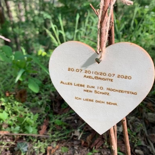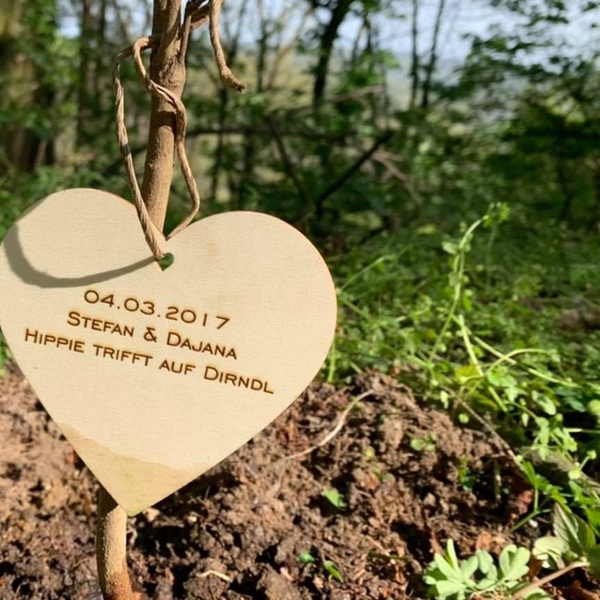 Verschenke einen Baum und schaffe einen bleibenden Eindruck, der weit über den Tag hinaus wirkt. Die Bäumchen werden von örtlichen Förstern oder Naturschützern in der Eifel gepflanzt und können optional an einem Wunschtag gesetzt werden, um ein besonderes Datum zu feiern. Jede Pflanzung kommt mit einer persönlichen Urkunde als PDF und auf Wunsch einem Holzherz mit Lasergravur deiner Widmung direkt am Baum. Du erhältst zudem regelmäßige Video- und Fotoberichte von der Pflanzfläche. Mit diesem Geschenk unterstützt du nicht nur die Wiederaufforstung, sondern trägst aktiv zum Klimaschutz bei, bindest Kohlenstoff und produzierst Sauerstoff – ein Geschenk, das wächst und Gutes tut.