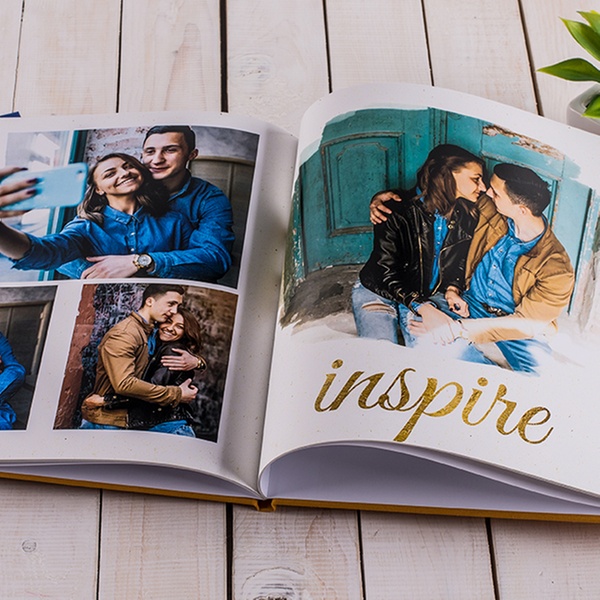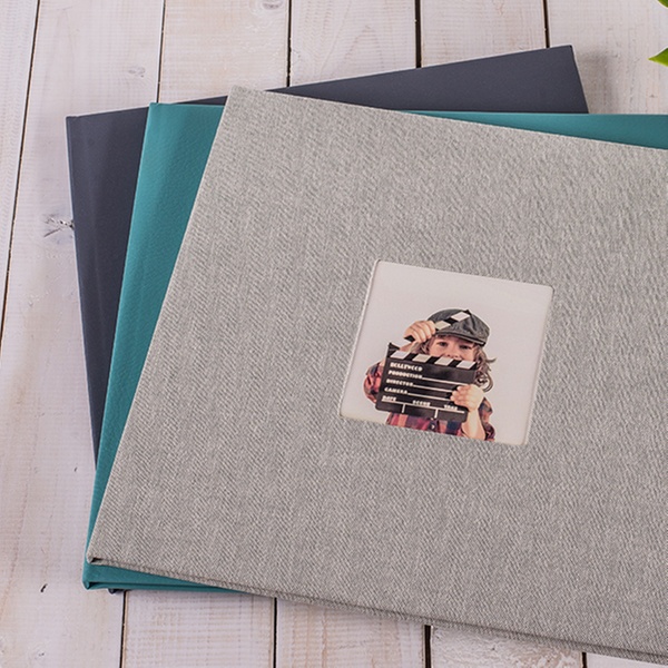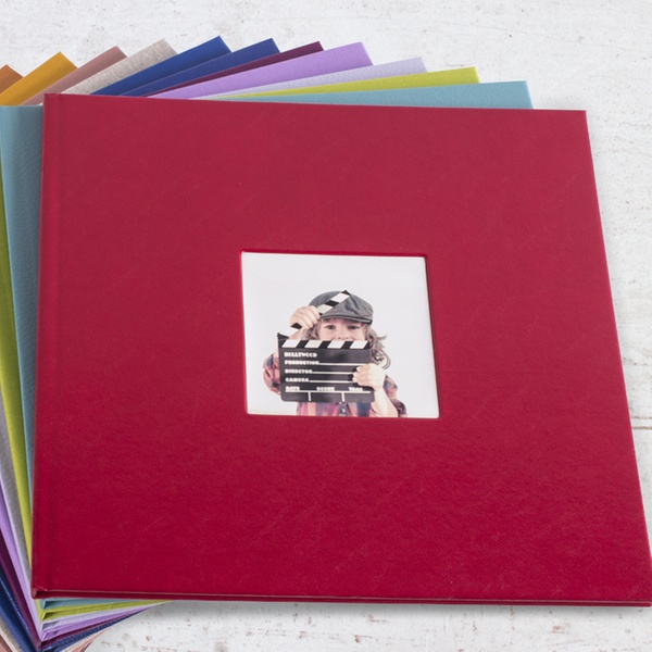 Personalisierbares Fotobuch im quadratischen 30 x 30 cm Format mit Hardcover aus Öko-Leder oder Textilgewebe und Sichtfenster
