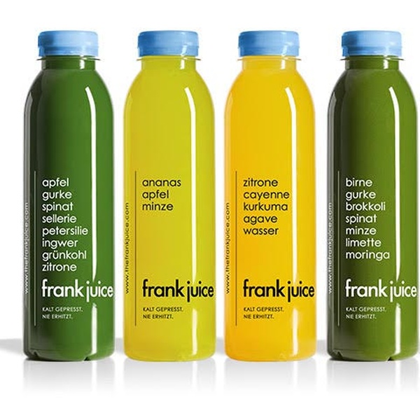 Die Idee, besondere Obst- und Gemüsesäfte für Kurzzeit-Fastenkuren (Juice Cleanse) herzustellen, kam den Gründern bei einer Reise in die Vereinigten Staaten. Sie entschlossen sich, Saft zu pressen, der das Etikett „Frank Juice“ verdient, weil er ehrlich, offen und frei von Zusätzen und künstlichen Konservierungsstoffen ist. Frank Juice bietet 7 abwechslungsreiche kaltgepresste Säfte aus über 20 regionalen und teils exotischen Zutaten. Hinzugefügt wird unter anderem heimisches Wurzelgemüse, Grünkohl und Spinat, aber auch Exotisches wie Ananas, Cashews, Kurkuma, Vanille und Agave. Es gibt im Shop auch leckere Bio-Suppen und vitale Power-Shots für maximale Abwechslung.