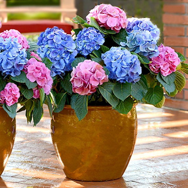 Die leuchtende Blütenpracht bleibt erhalten, wenn die Hortensien reichlich mit Wasser versorgt werden. Der Ballen darf keinesfalls austrocknen.