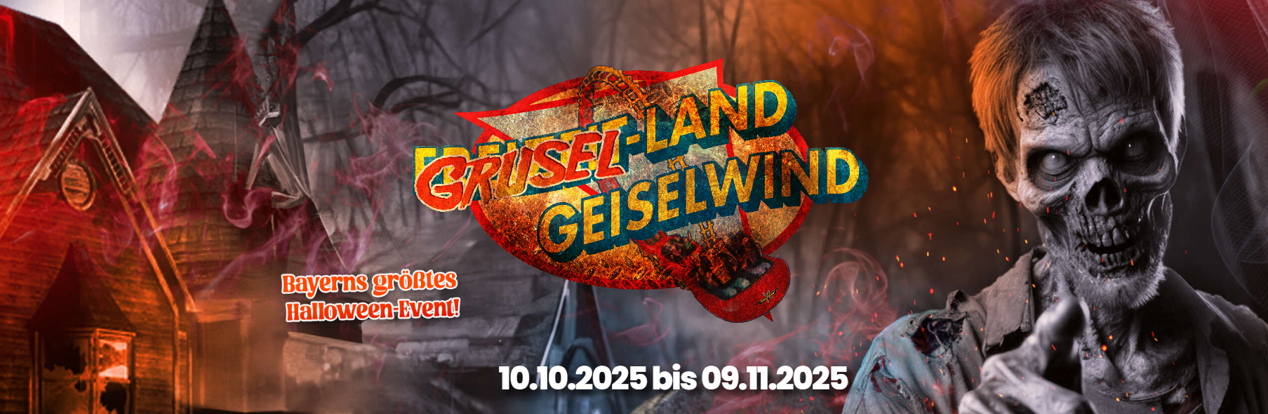 Das Freizeit-Land verwandelt sich vom 10. Oktober bis 9. November 2025 erneut in Bayerns größtes Halloweenfest – das Grusel-Land! Familien erwartet tagsüber ein fröhlich-schauriges Halloween mit Kürbissen, Shows und über 120 Attraktionen. Kreative Aktionen, stimmungsvolle Dekorationen und besondere Gastronomieangebote sorgen für unvergessliche Herbsttage. Abends locken zusätzlich die beliebten Spooky Nights mit jede Menge Nervenkitzel und Gruselstimmung – alles im regulären Eintrittspreis enthalten!