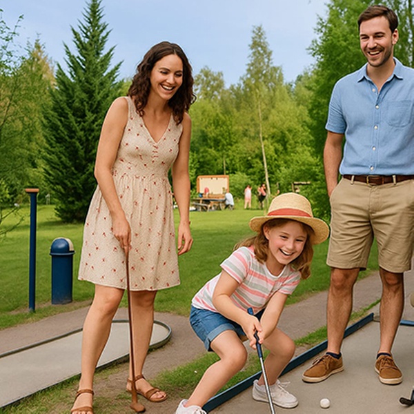 - 60 Min. ein 5er-Tretboot (ohne Dach) und 1x Minigolf spielen für bis zu 5 Personen