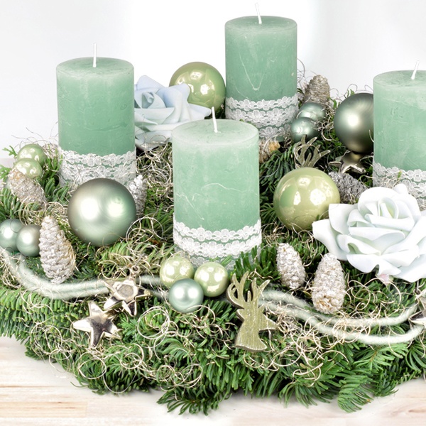 - 4 pastellgrüne Rustikstumpenkerzen