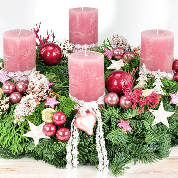 - 4 rosa Rustikstumpenkerzen