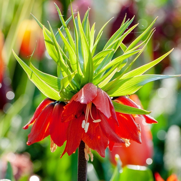 - Fritillaria Rubra: rote, hängende glockenförmige Blüten