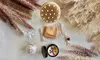 Geschenkbox mit einer Seife aus Bio-Ölen, einer Duftkerze aus Sojawachs mit Natursteinen und Bade-Cupcake oder -Kugeln zum Entspannen daheim