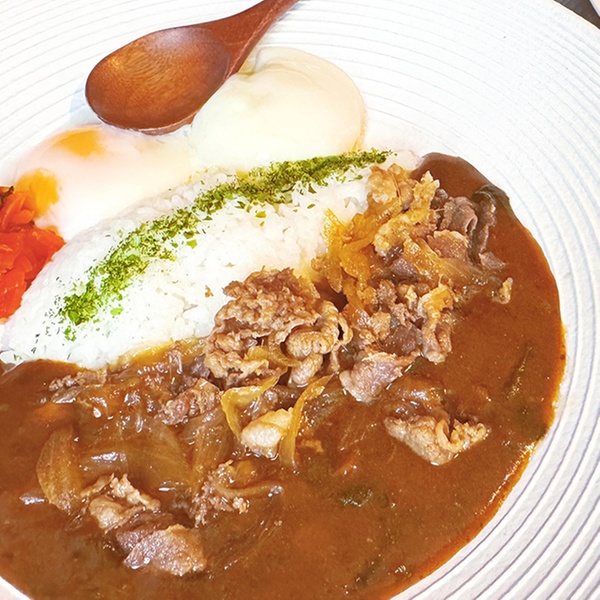 • Zart gegartes, dünn geschnittenes Rindfleisch auf Reis