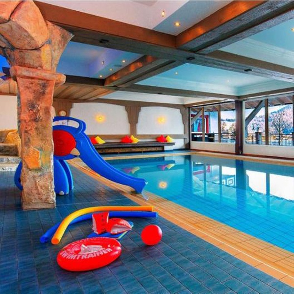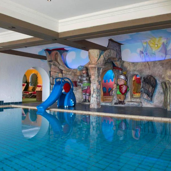 Der großzügige Wellnessbereich mit Innenpool, Sauna und Infrarotkabine lädt zum Entspannen ein. Hier finden Eltern Ruhe und Erholung, während die Kinder im betreuten „Happy Club“ spielen, basteln oder toben.