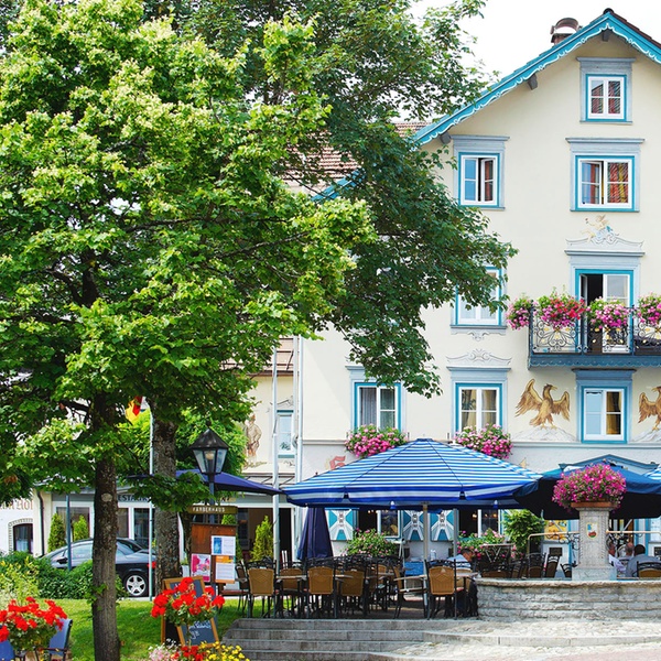 Das traditionsreiche 4-Sterne-Hotel Adler, erbaut im Jahr 1574, befindet sich im Ortskern des heilklimatischen Kurortes Oberstaufen und bietet modernen Komfort, ohne dabei seinen charmanten, ursprünglichen Charakter zu verlieren. Eingerichtet im Allgäuer Stil besticht die Unterkunft mit ländlichem und beruhigendem Ambiente, das wunderbar mit der idyllischen Naturlandschaft des Allgäus harmoniert. Gäste übernachten in gemütlichen Doppelzimmern, die über Bad oder Dusche, Radio, Fernseher mit DVD, WLAN, Minibar, Safe und teilweise auch Balkon verfügen. Das hoteleigene Restaurant bietet kulinarische Highlights der bayerischen, deutschen und internationalen Küche. Ein tägliches Frühstück lockt Urlauber aus den Federn und ein 4-Gänge-Gourmet-Menü, zu welchem ein Glas eines offenen Tagesweines gereicht wird, lässt den Abend entspannt ausklingen. Der Wellnessbereich umfasst Dampfbad, Farblichttherapie, Erlebnisbad Aquaria mit Dampf-, Bio-, Trocken-, Panorama- und Gipfelsauna, separate Damensaunen, Infrarot-Dampfkabine, Massageliegen, Solarium und Fitnessraum.