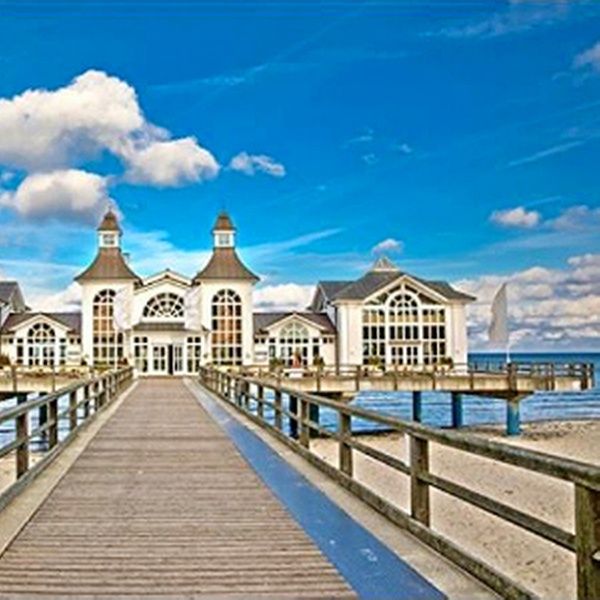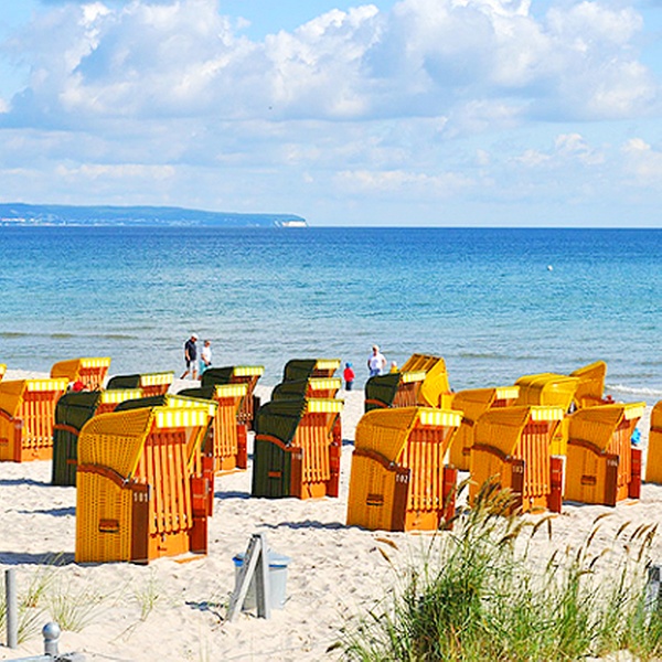 Das als „Tor nach Skandinavien und zum Baltikum“ geltende Neu Mukran liegt auf der Halbinsel Jasmund zwischen Sassnitz und dem Ostseebad Binz, dem größten Seebad der Insel Rügen. Keine halbe Stunde vom markanten Kreidefelsen Königsstuhl entfernt, hat es sich vom kleinen Küstendorf inzwischen zu einem bekannten Hafen für Kreuzfahrtschiffe und Fähren gemausert. Der von feinem Sand bis zu Steinen alles für Sonnenanbeter bietende Strand ist etwa fünf Kilometer lang und bis zu 50 Meter breit. Es bieten sich Ausflüge zu den legendären Kreidefelsen mit dem prächtigen Königsstuhl im Nationalpark Jasmund oder entspannte Wanderungen durch von Sturmfluten geprägte, drei Kilometer lange Feuersteinfelder an. Die Distanzen sind in jedem Fall erfreulich kurz.