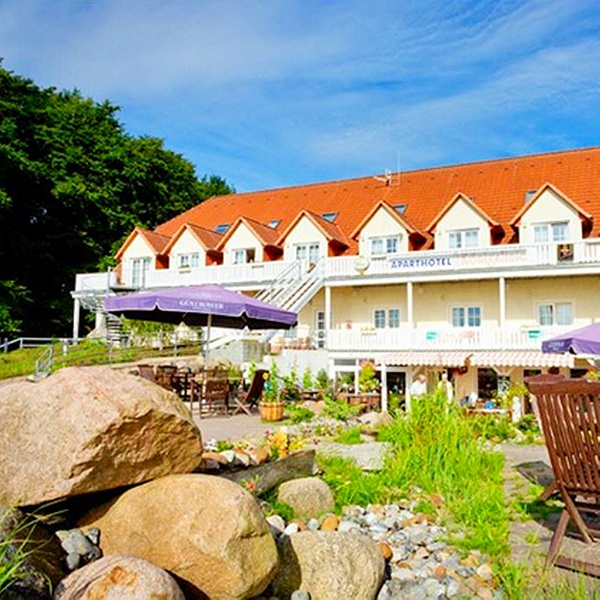 Wo einst die Ära von Kaiser Wilhelm II. und seinem skandinavischen Pendant König Gustav V. die legendäre Fährverbindung von Sassnitz ins schwedische Trelleborg startete, erinnert das Aparthotel Königslinie an die gute alte Zeit. Das komfortable Haus in Mukran hält für den Aufenthalt ein Doppelzimmer (20-25 qm) in warmen Farben mit Dusche und Fernseher bereit, entweder zur Meerseite oder mit Blick in den Garten. Im Deal enthalten ist das tägliche Frühstück im „Al Porto“ Restaurant, das mit italienischen und norddeutschen Spezialitäten verwöhnt.