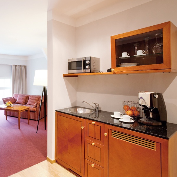Hier beziehen Urlauber eine edle, ca. 41 bis 59 qm große Suite mit Bad oder Dusche. Zur gehobenen Ausstattung zählen zwei Flachbildfernseher und eine Hifi-Stereoanlage mit DVD-Player, ein Sofa, ein Schreibtisch mit Internetanschluss, ein Safe sowie bequeme Luxus-Boxspringbetten.