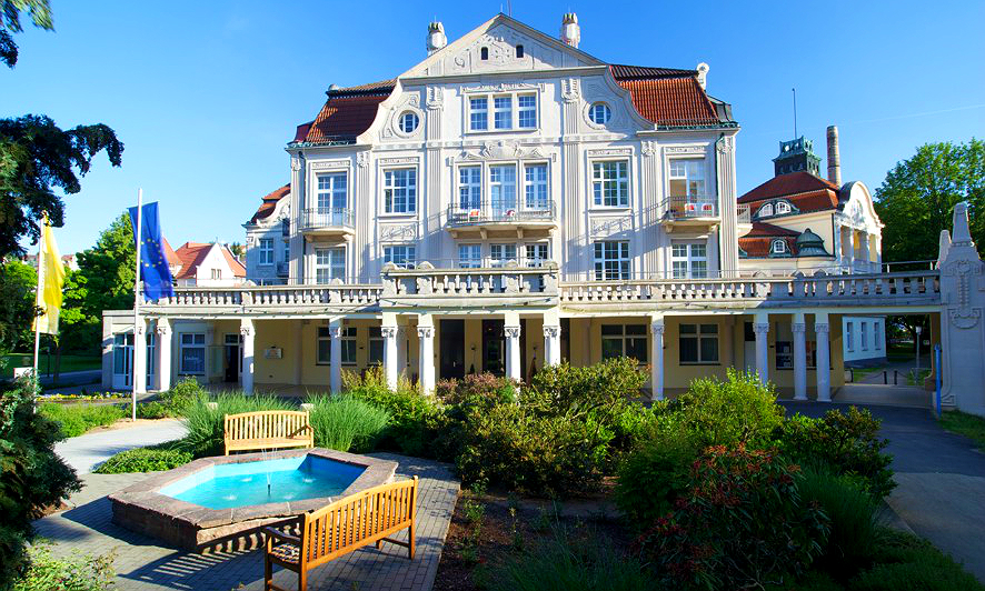 Umgeben vom idyllischen Kurpark strahlt das mit vier Sternen ausgezeichnete Hotel- und Gesundheitszentrum Badehof Bad Salzschlirf die stattliche Pracht einer denkmalgeschützten Jugendstil-Residenz aus. Das Innere des Hotels mit seinen hohen Decken und weiten Fenstern, die beeindruckende Hotelhalle mit rotem Teppich, Treppe und beleuchteter Galerie und nicht zuletzt der Speisesaal mit Kronleuchtern, Stuckdecken und eleganten Säulen verströmen exklusiven Glanz. Die Gäste logieren in hellen, geschmackvoll eingerichteten Komfort-Doppelzimmern, welche über großzügige Badezimmer mit Dusche und Haartrockner, Fernseher, Telefon, Safe, Schreibtisch und gemütliche Sessel verfügen. Wie es sich für ein Hotel in einem Kurort gehört, bietet der Badehof neben stilvollem Interieur und einem medizinischen Zentrum für Vitaldiagnostik und -Therapie auch herrliche Wellnessmöglichkeiten: Der Spa-Bereich umfasst ein Hallenbad, eine Sauna, ein Dampfbad sowie einen Fitness-Bereich. Daneben werden im Hotel gegen Aufpreis verschiedene Kosmetik- und Wellnessanwendungen angeboten, auf welche Kunden mit dem aktuellen Deal einen Preisnachlass von 20 € (ab einem Wert von 50 €) erhalten. Kulinarisch verwöhnt werden die Reisenden bei einem reichhaltigen Frühstücksbuffet sowie einem eleganten 4-Gänge-Menü. Zur Ankunft wird ein erfrischender Wellness-Cocktail gereicht.