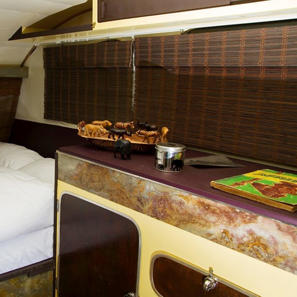 Maximale Belegung: Schlafwagen zweier Abteil and Standard Wohnwagen: 2 Personen, US-Airstream: 4 Personen.