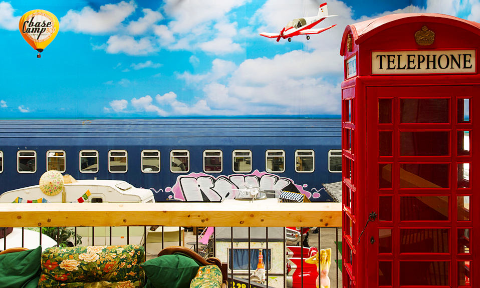 15 thematisch gestaltete Retro-Wohnwagen, 2 Schlafwagen der Deutschen Bahn und 4 original US-Airstreams warten auf zwei Übernachtungsgäste im BaseCamp Hostel Bonn, einem einzigartigen und außergewöhnlichen Design-Hostel unter dem Dach einer ehemaligen Lagerhalle. Vor Ort genutzt werden können: Kühlschrank, Mikrowelle, Wasserkocher, Spüle und Trinkwasser sowie ein mit Stühlen und Tischen ausgestatteter erhöhter Aufenthaltsbereich, von dem aus sich die Campinglandschaft überschauen lässt. Die Duschen und Toiletten befinden sich in der Halle in einem abgetrennten Bereich, getrennt für Damen und Herren. Im Frühling, Sommer und Herbst stehen Besuchern ein Biergarten sowie Grillplätze zu Verfügung. In der Nähe befinden sich ebenfalls verschiedene Restaurants und ein Supermarkt.