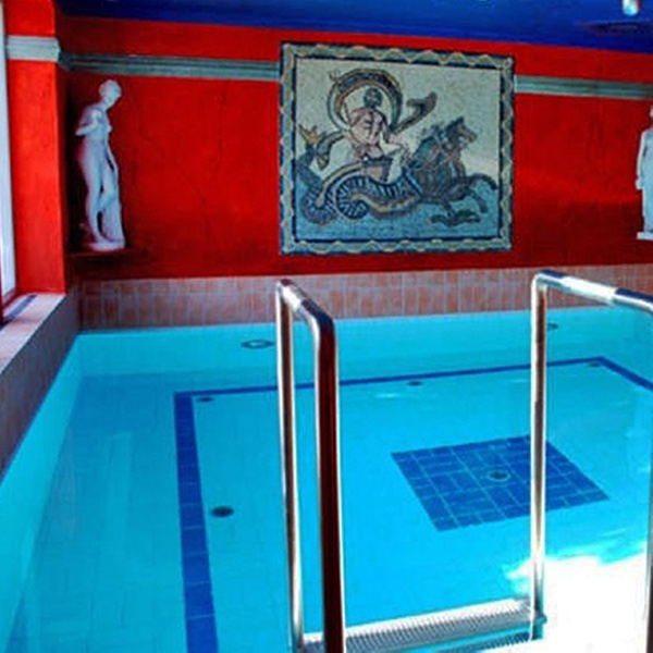 - Im griechisch-römischen Ambiente lädt der Wellnessbereich mit Indoor-Pool mit Gegenstromanlage, Dampf- und finnischer Sauna, Ruhezone, Solarium und Fitnessraum zum Entspannen ein.