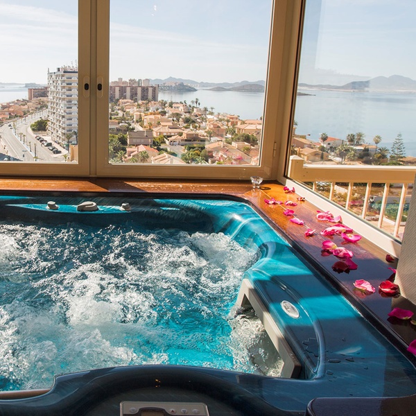 Das komfortable Hotel & Spa Mangalan mit eigenem Pool und Sonnenliegen, liegt direkt am Strand, in einer privilegierten Gegend von La Manga Provinz Murcia, wo zwei Meeren, das Mittelmeer und das Mar Menor aufeinender treffen.