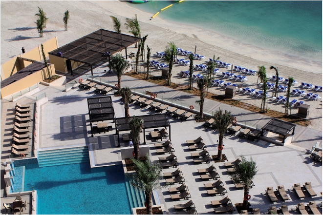 Das 5-Sterne-Hotel Double Tree by Hilton Marjan Island mit 350 m langem Privat-Sandstrand befindet sich auf der jüngst angelegten Insel Marjan im oberen Gebiet von Al Hamra. Das Luxushotel der Hilton Hotelgruppe bietet komfortable Voraussetzungen für einen entspannten Badeurlaub. Das Ressort verfügt über einen weitläufigen Park, drei Restaurants mit internationalen, italienischen und lokalen Spezialitäten, sowie 2 Bars, einen Pub und eine Lounge. Drei wohl temperierte Pools in der Gartenanlage runden das Angebot ab. Die komfortablen Doppelzimmer sind mit Wannen- oder Duschbad mit Bademänteln und Slipper, WLAN, Satelliten-Fernseher sowie Balkon oder Terrasse, teilweise mit Meerblick ausgestattet. Sport im Fitnesscenter und Billard, Tischtennis sowie Beach Volleyball sind inklusive, gegen Gebühr kann der Spa-Bereich mit Sauna, Dampfbad und therapeutischen Anwendungen genutzt werden.