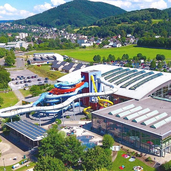Im Sauerland liegt das große Erlebnisbad mit einer Weltneuheit: Die beiden einzigartigen Steh-Rutschen bieten ein ganz neues Rutschgefühl. Anstatt zu liegen oder zu sitzen, wird die Bahn hinuntergesurft. Ein weiteres Highlight stellt die Deutschlandneuheit „Pink Jump“ dar, welche mit einem 6 Meter Frei-Flug endet. Unbedingt noch zu erwähnen ist der AquaLooping – Deutschlands erste Looping-Wasser-Rutsche mit Achterbahn-Feeling. Insgesamt bieten 12 TOP-Rutschen Abenteuer und Spaß für die ganze Familie. In den 13 Wasserlandschaften laden erlebnisreiche Kleinkindbereiche mit Piratenschiff und turbulentem Wellenbecken ebenso zur Entdeckungsreise ein wie Sport- und Panoramabad und die beiden Solebecken. Ein einzigartiger Soft-Badebereich mit vier Textil-Saunen und Erlebnisfluss inklusive Pool-Bar runden die Vielfalt für jeden Freizeithungrigen ab.