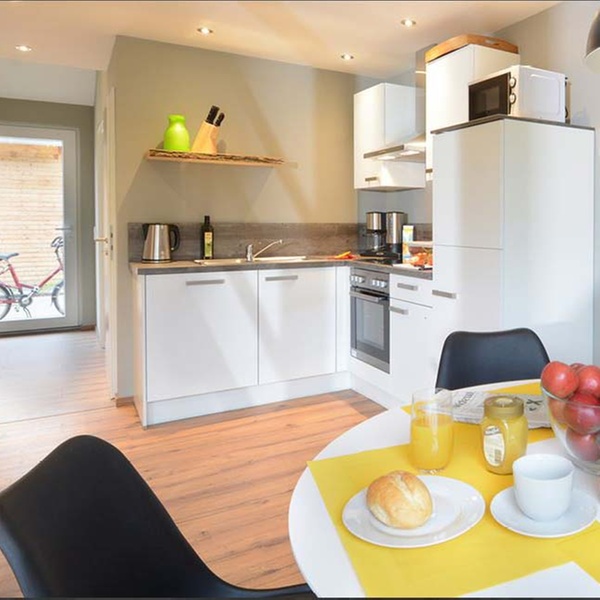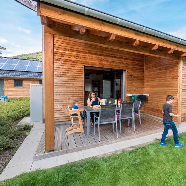 Die Gäste übernachten in modernen Ferienhäusern direkt am Spaß- und Erlebnisbad AquaMagis.