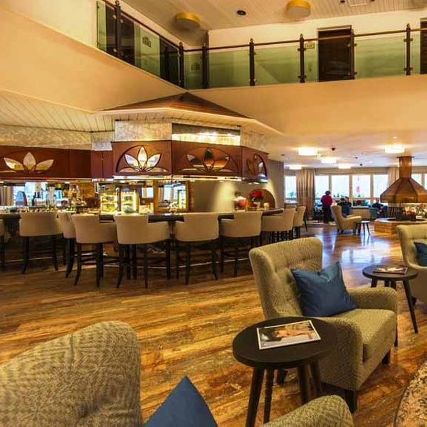Im hoteleigenen Restaurant werden österreichische und internationale Spezialitäten serviert. Ein typisch österreichisches Café mit hausgemachtem Gebäck steht den Gästen ebenfalls zur Verfügung. Die Gäste haben die Möglichkeit, eine Melange oder einen Einspänner und dazu einen schmackhaften Apfelstrudel zu verkosten. Die Gäste können sich auf der Sonnenterrasse oder in der Wohnhalle mit einem Kamin entspannen. An der Bar werden diverse Drinks und Digestives angeboten.