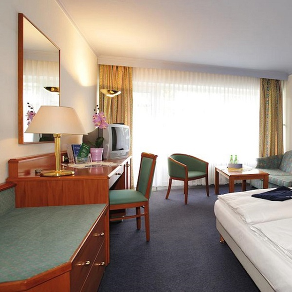 Geräumige Doppelzimmer mit Balkon, ausgestattet mit Bad/Dusche und WC, Haartrockner, Safe, Sat-TV, Radio, Telefon, Fax- und Modem-Anschluss freuen sich auf anspruchsvolle Gäste.
