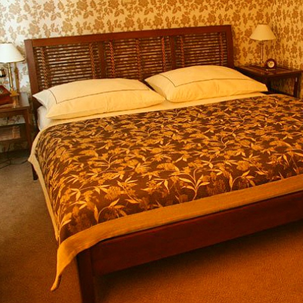 Die Doppelzimmer sind in warmen, gelb-braunen Farben gehalten und verfügen über ein Doppelbett oder zwei Einzelbetten sowie ein Badezimmer mit Dusche und WC. Zur weiteren Ausstattung gehörenein Kleiderschrank, ein Spiegel, ein Safe, ein Schreibtisch, ein Sofa, ein TV, ein Wecker sowie ein Telefon.