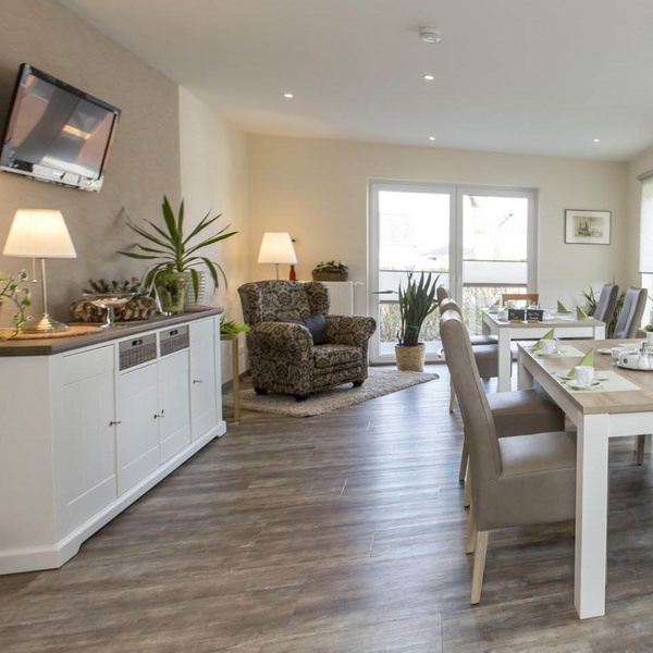 Die hellen Hotelzimmer sind geschmackvoll und modern eingerichtet und verfügen über einen Fernseher und ein eigenes Badezimmer mit Dusche und WC. Von den Zimmern aus werden die Gäste mit einem Blick auf den Garten oder den Deich belohnt. 65 bis 70 qm groß sind die Apartments, wobei die Ferienhäuser den Gästen zwischen 45 und 85 qm Platz bieten. Mit 1 bis zu 2 Schlafzimmern, ausgestatteter Einbauküche, großzügigem Wohn- und Essbereich, Badezimmer mit Dusche und WC inklusive Garten und Terrasse sowie einem Parkplatz direkt am Haus lässt sich ein erholsamer Urlaub gestalten.