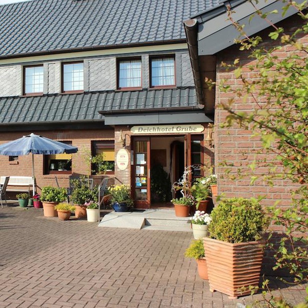 Das Deichhotel Grube begrüßt seine Gäste in unmittelbarer Nähe zu Restaurants und Cafés, direkt am Deich in Dorum-Neufeld.