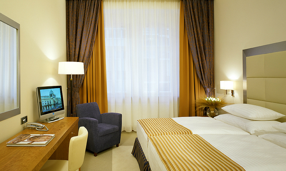 In ruhiger Lage zwischen zwei Parkanlagen gelegen, besticht das 4-Sterne-Haus mit italienischer Eleganz und Doppelzimmern mit luxuriöser Badezimmerausstattung, Minibar, kostenlosem Internetzugang und Flat Screen-TV. Das reichhaltige Frühstücksbuffet im Wintergarten garantiert einen guten Start in den Tag. Am Abend kann man die Eindrücke vom Tag an der Lobby-Bar noch einmal Revue passieren lassen. Eine Bus- und Tramhaltestelle ist wenige Meter vom Hotel entfernt und das Stadtzentrum in etwa 10 Minuten erreichbar.